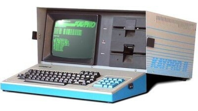 The Kaypro II was designed to be portable like the Osborne, housed in an aluminum case containing all the components and with a handle for carrying.