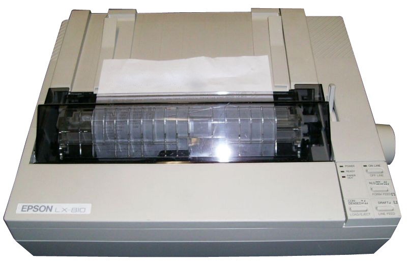 EPSON LX-810 Technical characteristics of EPSON LX-810 Brand: Epson Type: Printers Launched: 1989 Price: 199 USD Dot matrix printer. ← View other Epson printers